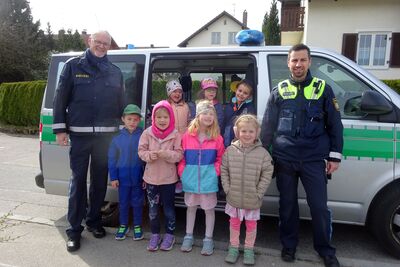 Vorschulkinder aus dem Kindergarten Rotthalmünster lernen das richtige Verhalten auf dem Weg zur Schule
